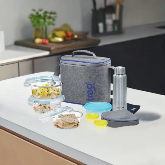 The Treo By Milton Premier Tiffin is a versatile lunch box set that includes various containers and a dining mat.