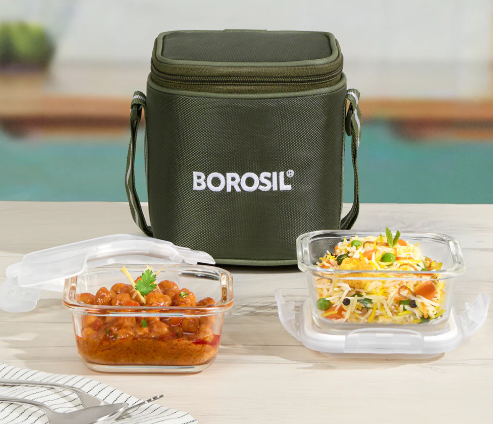 Fresh, tasty and healthy – our Borosil Lunch Boxes ensure that your food looks, tastes and smells just as it did while it was lovingly prepared. Made of the finest borosilicate glass, the leak proof boxes are 100% microwavable (up to 350°C), 100% oven safe, 100% stain proof and leach no chemicals into your food. Unlike the other glass lunchboxes in the market, Borosil’s Lunchbox range is made of high grade borosilicate glass, which is also oven safe. The high quality fabric carry bags are machine washable. There is no better way to bring home to the office. No plastic – isliye fantastic!