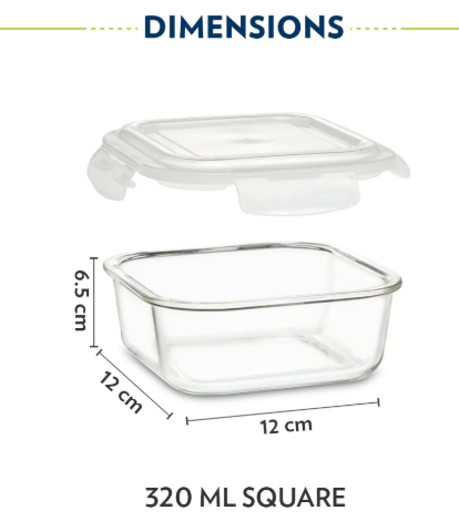 Borosil Eateasy Glass Lunchbox, Square x 2 (Tall)