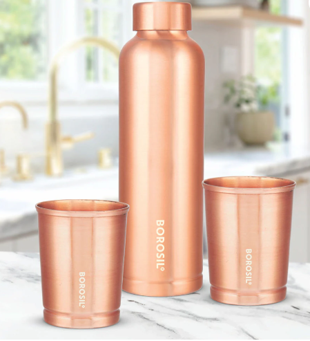 Borosil - Glance Glass Bottle w Narrow Mouth, Silver Lid
