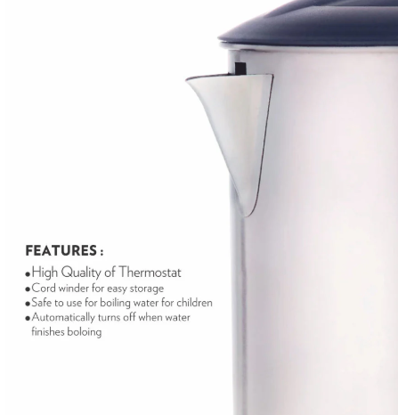- seamless body inside (no joints) allows for multi use, e.g. boiling noodles, eggs, maggi etc