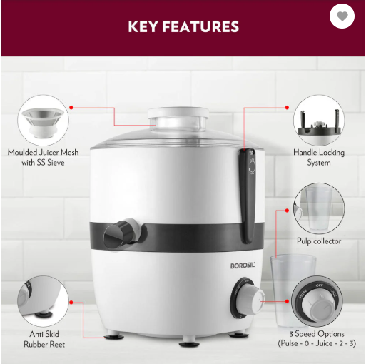 - anti drip juice nozzle prevents juice from dripping when not in use