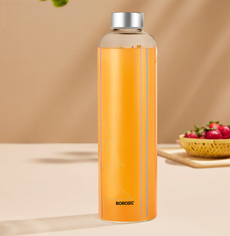 Borosil – Sintra Glass Bottle w Narrow Mouth, Silver Lid