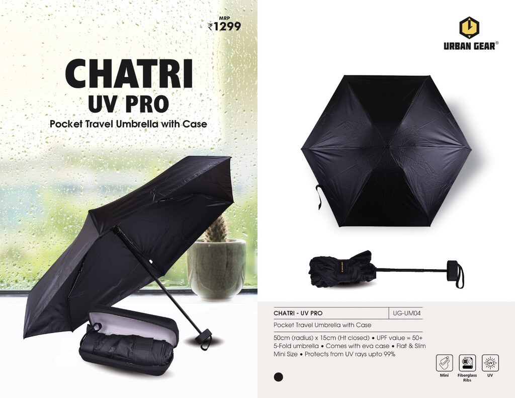 Pocket Travel Umbrella With Case Space for branding UPF Value = 50+5 Fold Umbrella Comes With eva Case Flat and Slim mini Size Protect from UV rays upto 99%