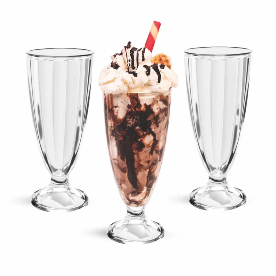 Colour: Transperant; Material: Glass; Package Content: 3 – Pieces Glace Cool Bowl (342 ml Each); Dimension in cm (L x W x H): 8.15 x 8.15 x 18.7