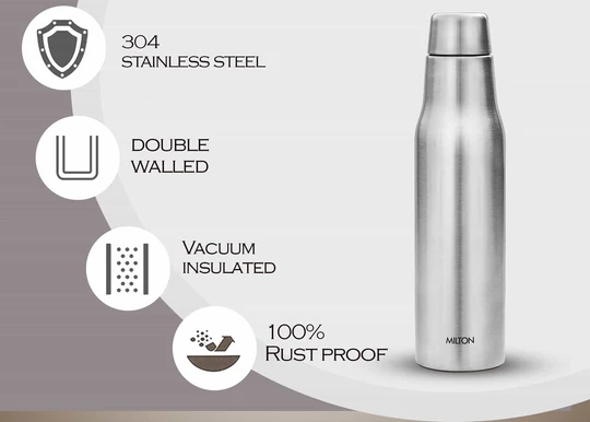 Colour: Silver; Material: Stainless Steel; Package Content: 1 – Piece Glad 750 Bottle; Dimension in cm (L x W x H):