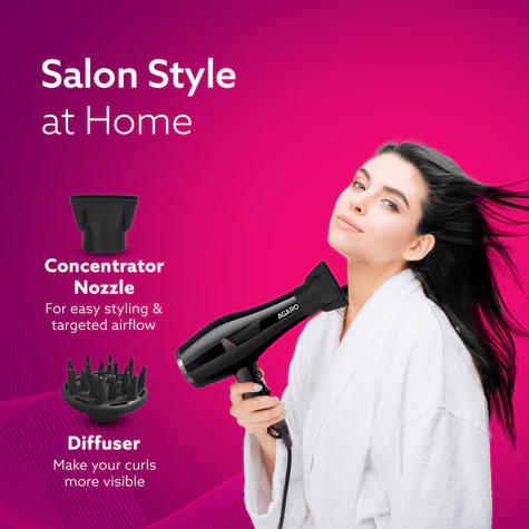 - 2000 Watts Hair Dryer with powerful AC motor creates ideal airflow & temperature for salon-style results