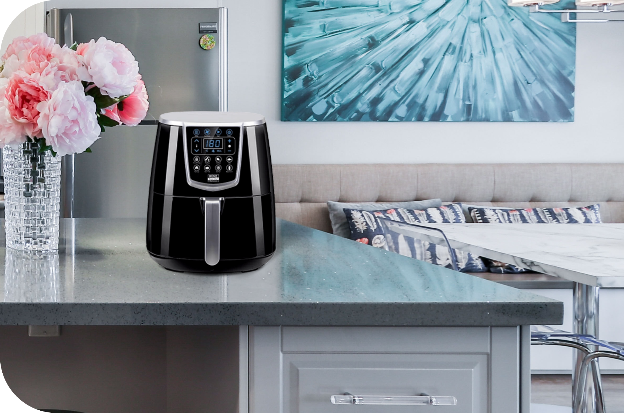 Healthy cooking is just a touch away with KENT HotAir Fryer. The multipurpose appliance comes with smart pre-set buttons for the most popular dishes. Starting from fried chicken, baked corn, aloo tikki to French Fries, you can prepare your choice of delights with just a touch.
