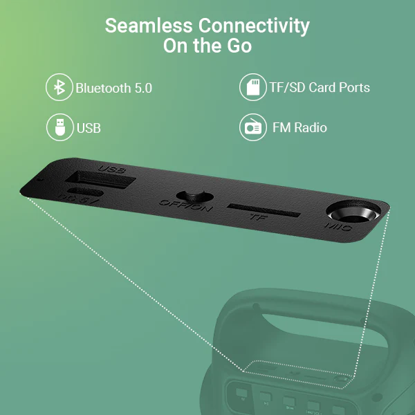 - With Bluetooth 5.0, the speaker also has a USB plug-and-play device that helps you stream music through your USB pen drive, while the TF/SD card may be useful for playing music using your TF card.