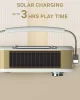 - A rechargeable 1200 mAh battery is included in the Evoke Retro portable speaker. It can be charged by an adapter and solar charger which will give you up to three hours of continuous playback.