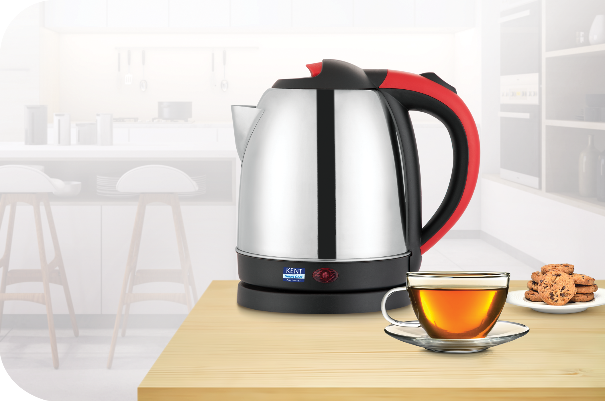 KENT Glaze Stainless Steel Kettle with 1500W power and 1.5L capacity, when works together, boils water faster for an instant cup of your favorite hot beverage or even soup in a matter of minutes.