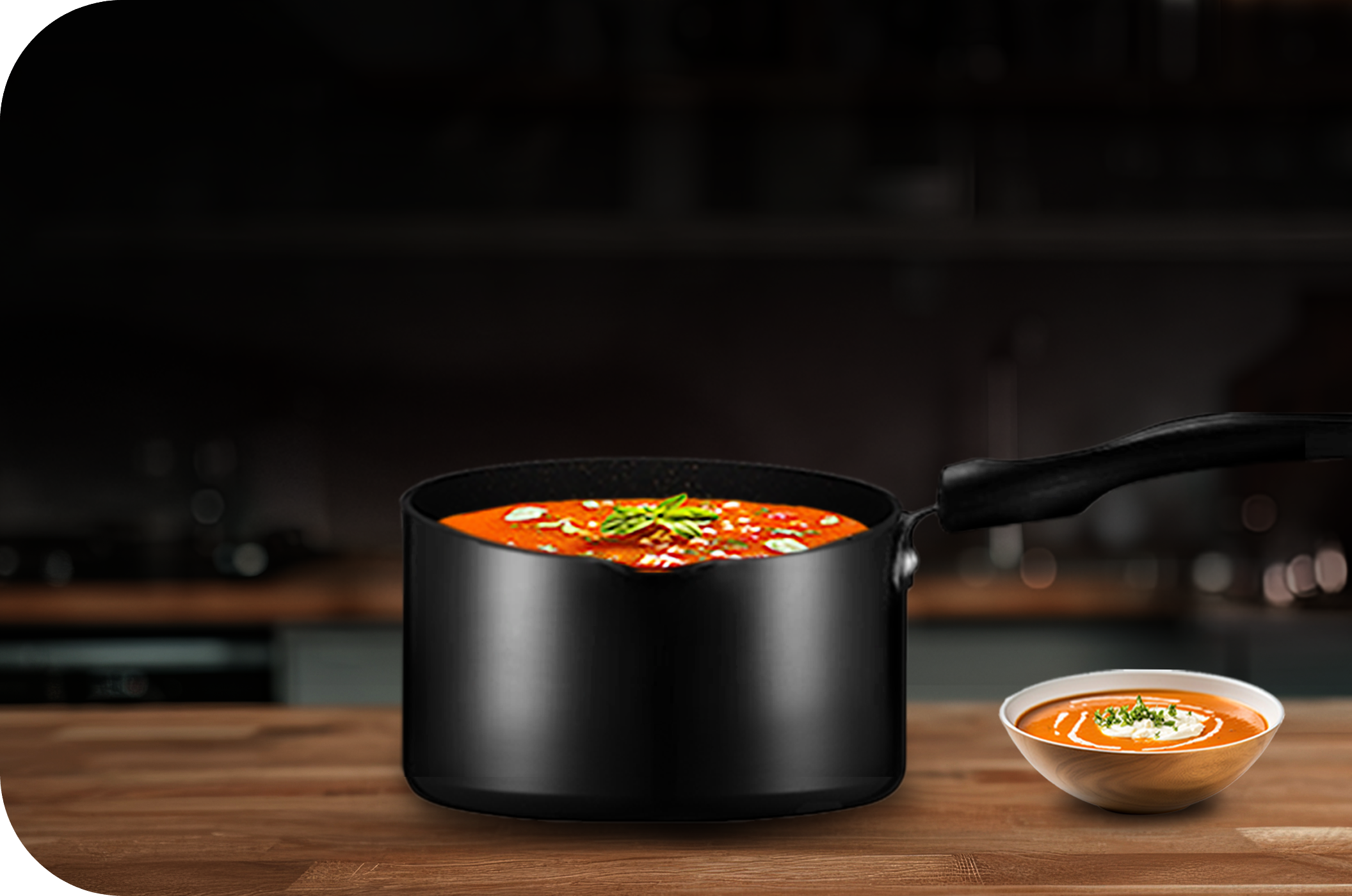 KENT Hard Anodised Sauce Pan is made from high-grade Hindalco Aluminium, which can withstand high heat temperatures and ensure durability and reliability in the kitchen.