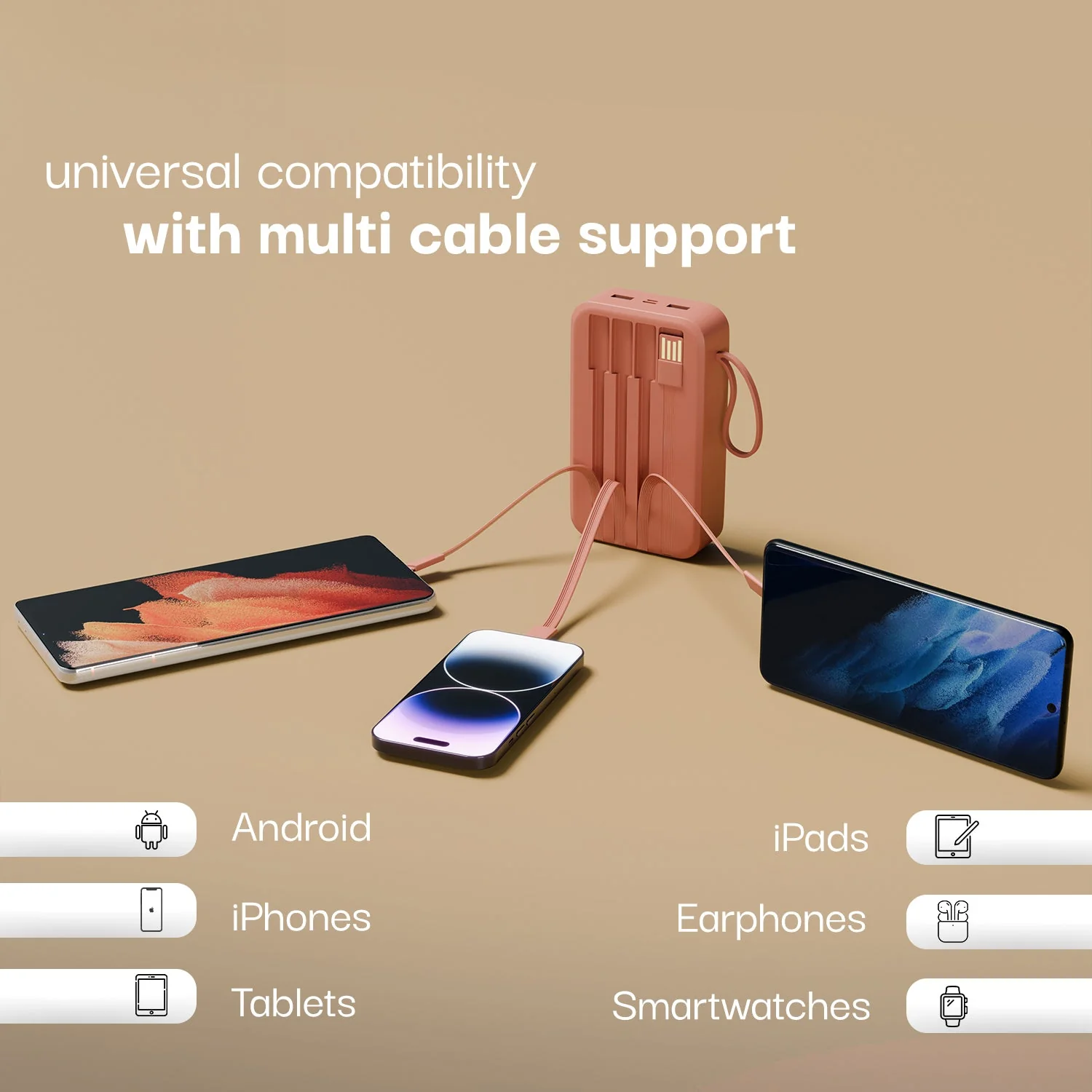 Compact 22.5W power bank with quick charge 3.0, featuring multiple ports. Ideal for fast charging mobiles, earbuds, and smartwatches.