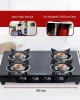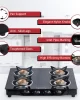 This gas stove features a sleek glass top with 4 burners, perfect for efficient cooking. ISI certified for safety, it comes with a 1-year warranty, making it a reliable choice for your kitchen.