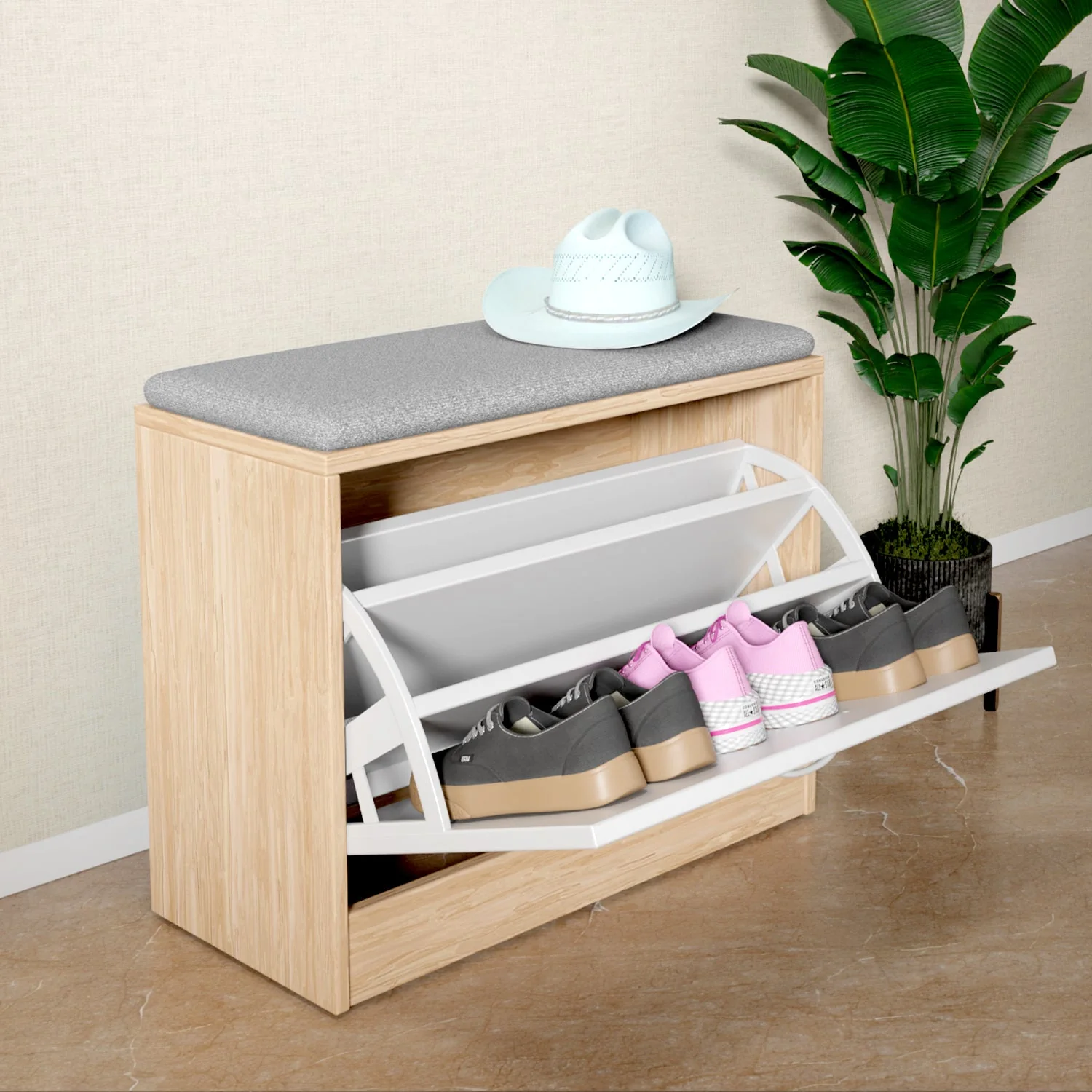 Lifelong – Wooden Shoe Rack Cabinet with Bench
