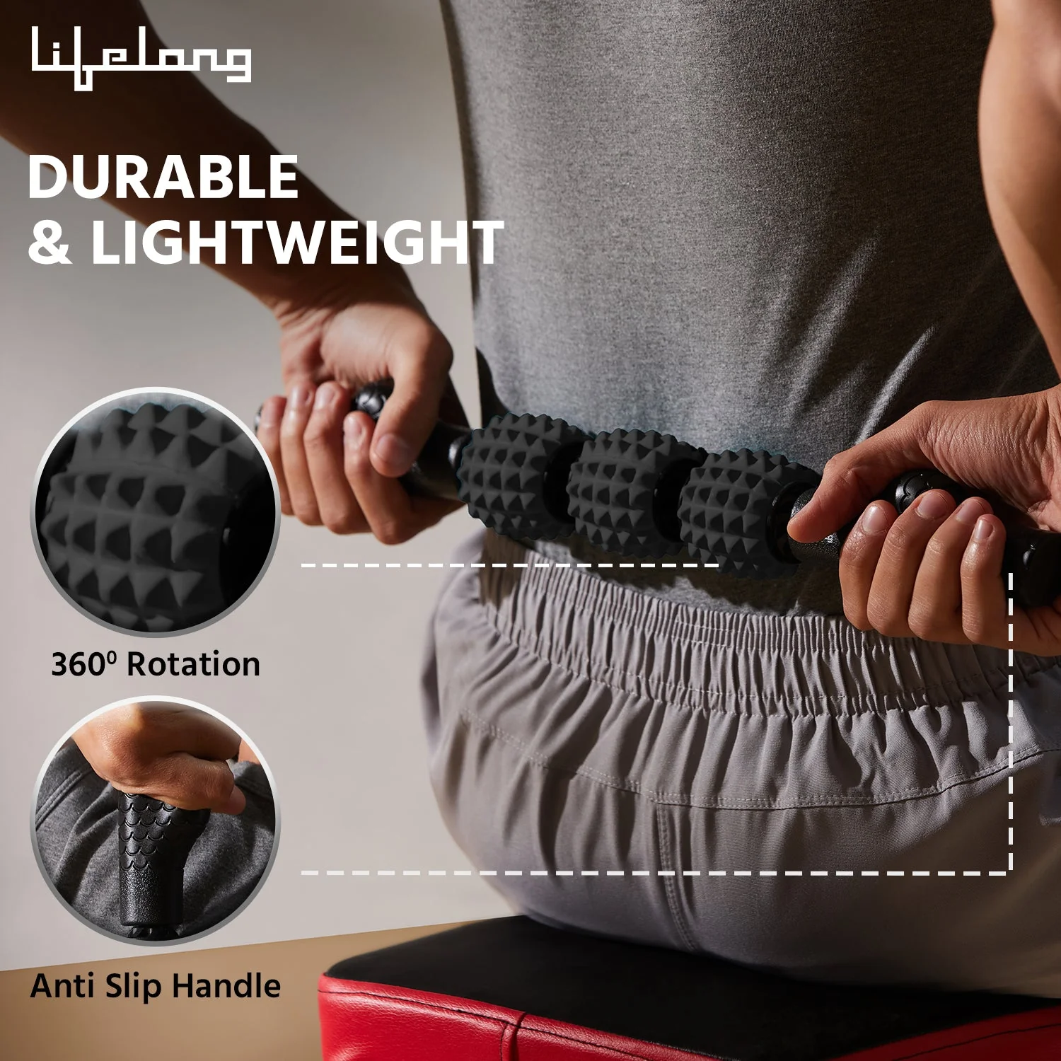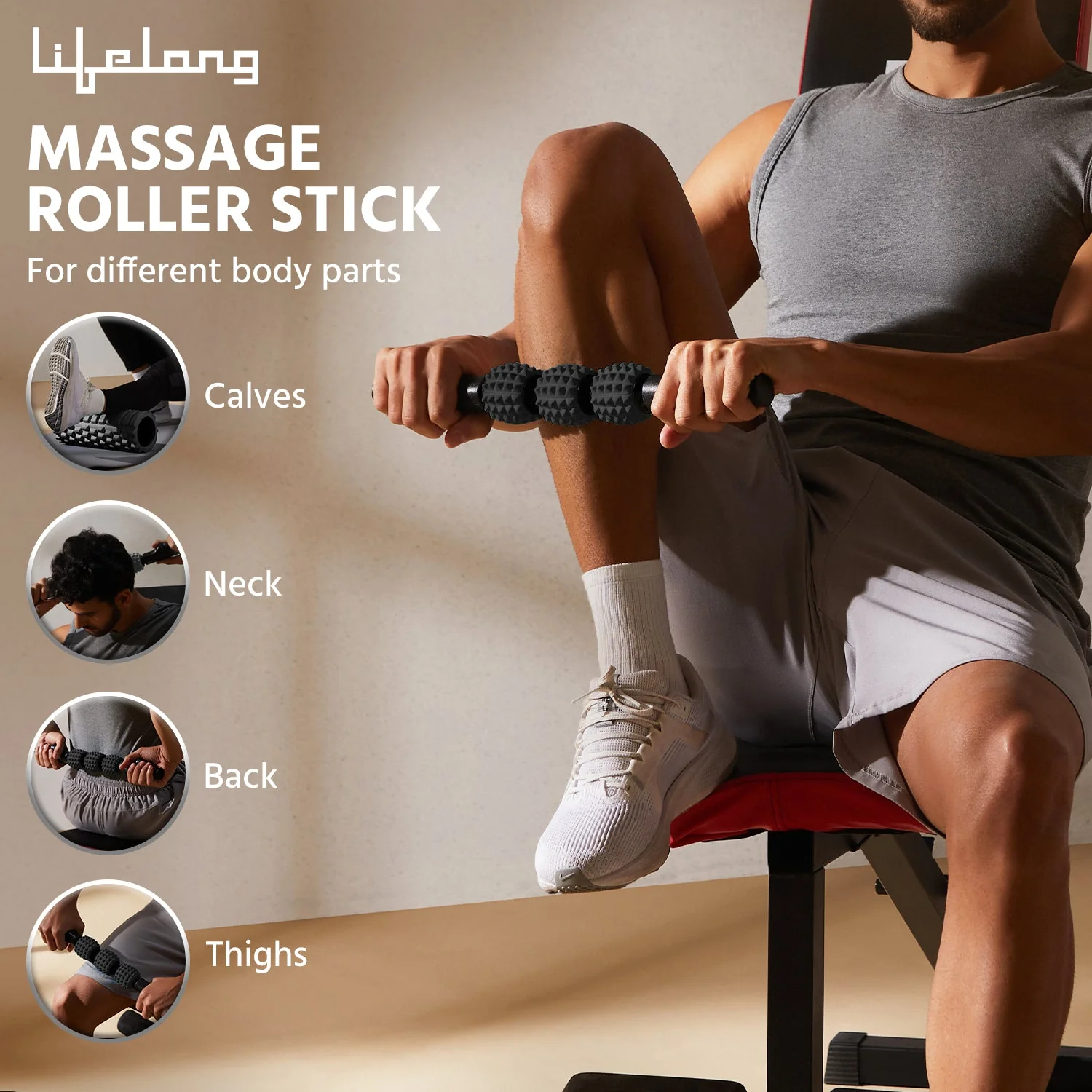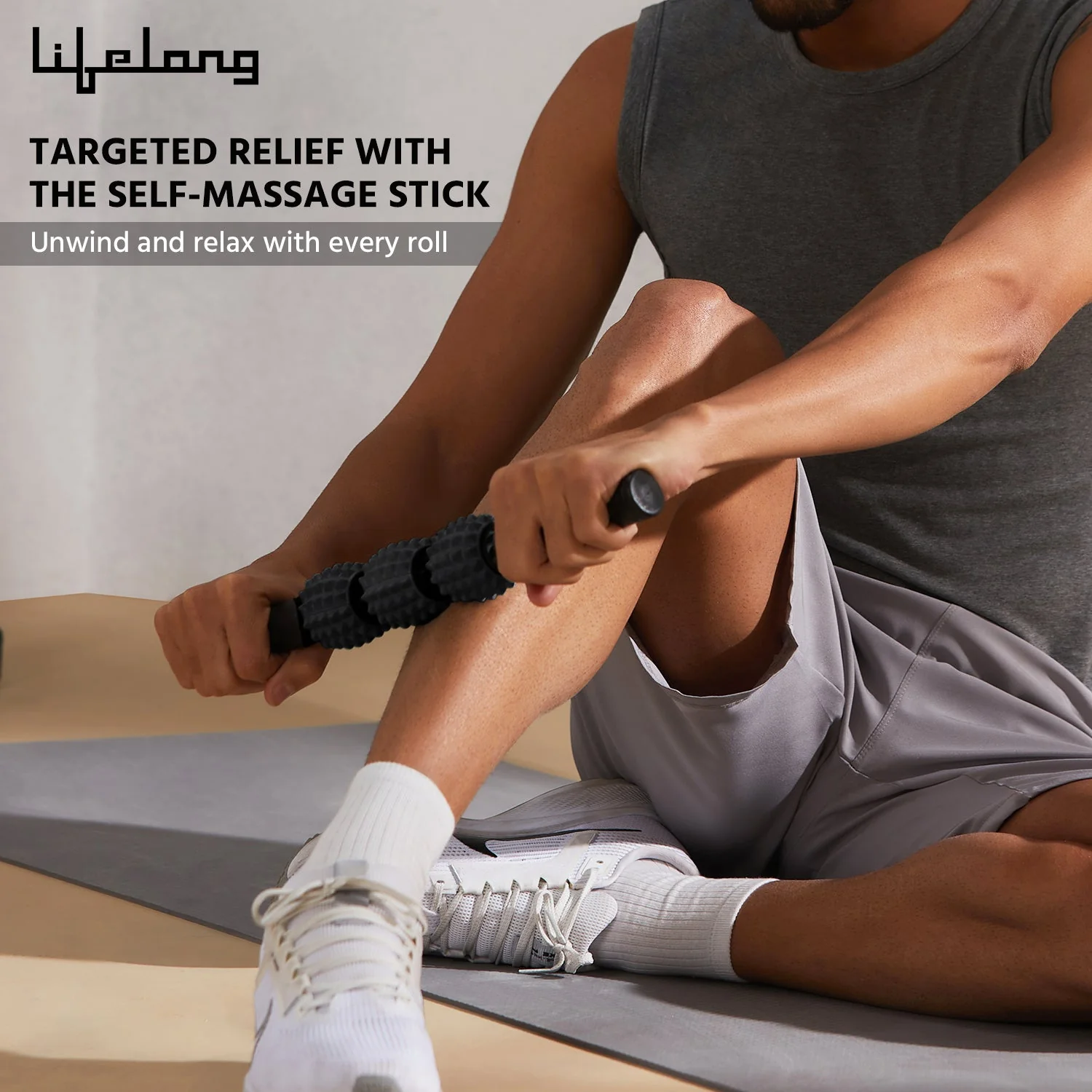 This muscle roller massager stick is designed for deep tissue relief, targeting pain, tightness, and cramps in the body, neck, shoulders, and back.