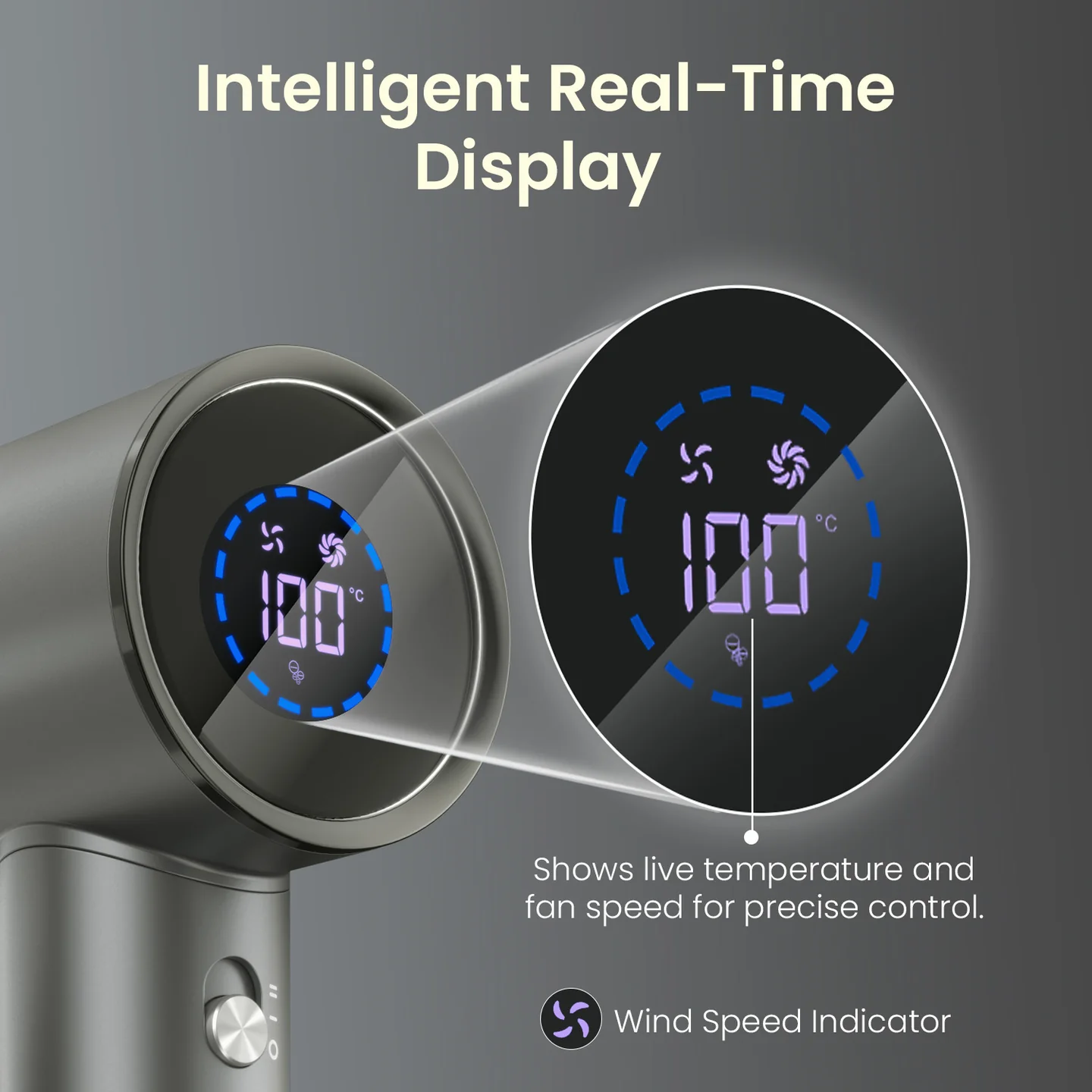 - Intelligent Real-Time Display offers easy-to-read settings and usage feedback, allowing you to track your drying progress and adjust parameters for the perfect styling experience, every time.