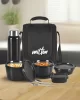 – Milton Pro Lunch set includes stainless steel containers, an aqua bottle, utensils, and a jacket