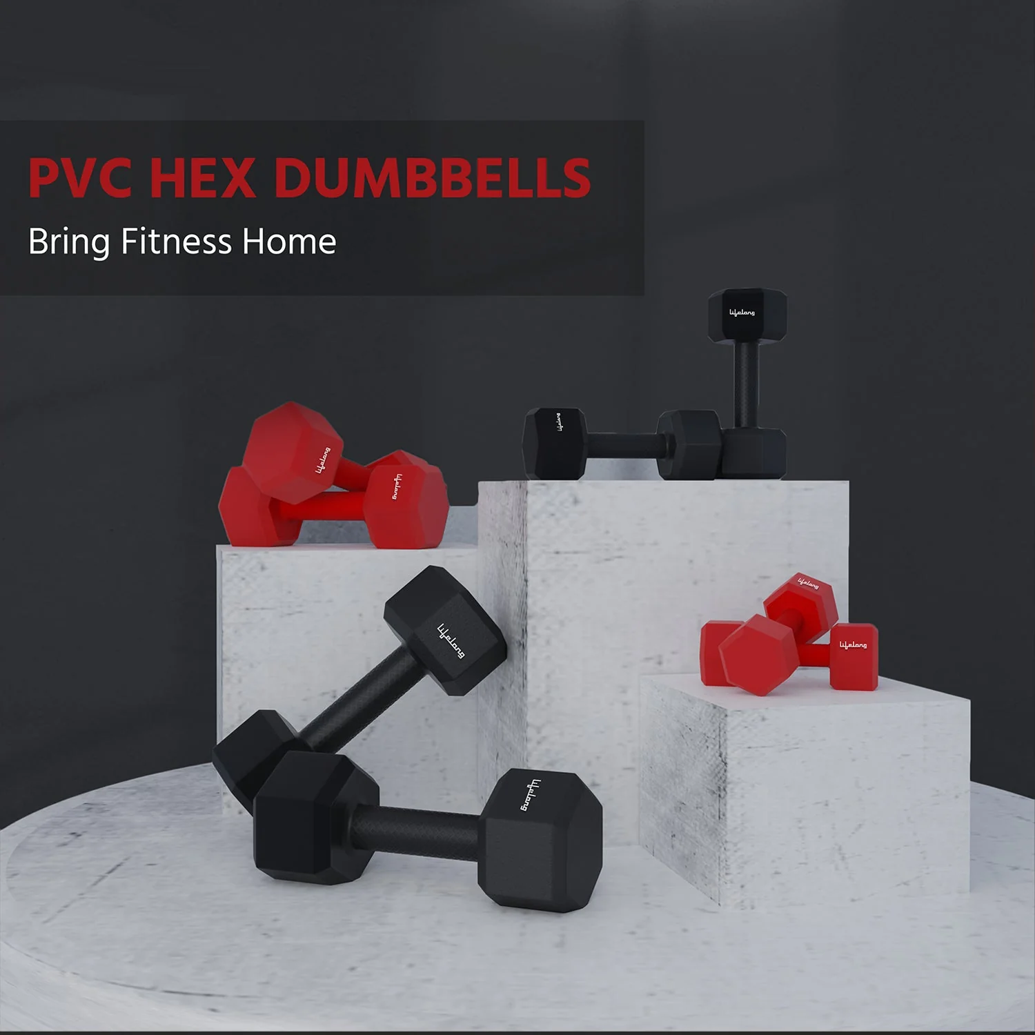 Elevate your workouts with these 4 kg PVC Hex dumbbells.