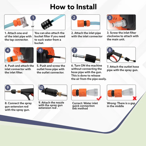 - Can be used with tap and also with bucket water with the help of Self Priming Technology