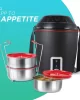 Colour: Black; Material: Others; Package Content: 3 – Piece Smart Electric App Tiffin; Dimension in cm (L x W x H):