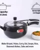 - KITCHEN ALL-ROUNDER: Versatility at its best; use this pressure cooker for sautéing, steaming, frying, boiling, deep frying, and pressure cooking. From Biryani to Cakes, and everything in between, this all-in-one cooker easily handles a wide range of dishes.