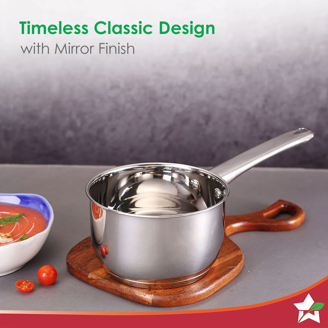 - The full-body saucepan has the right thickness to balance strength and functionality. The stainless steel is anti-bacterial and non-porous, and hence never reacts with food and doesn’t rust.