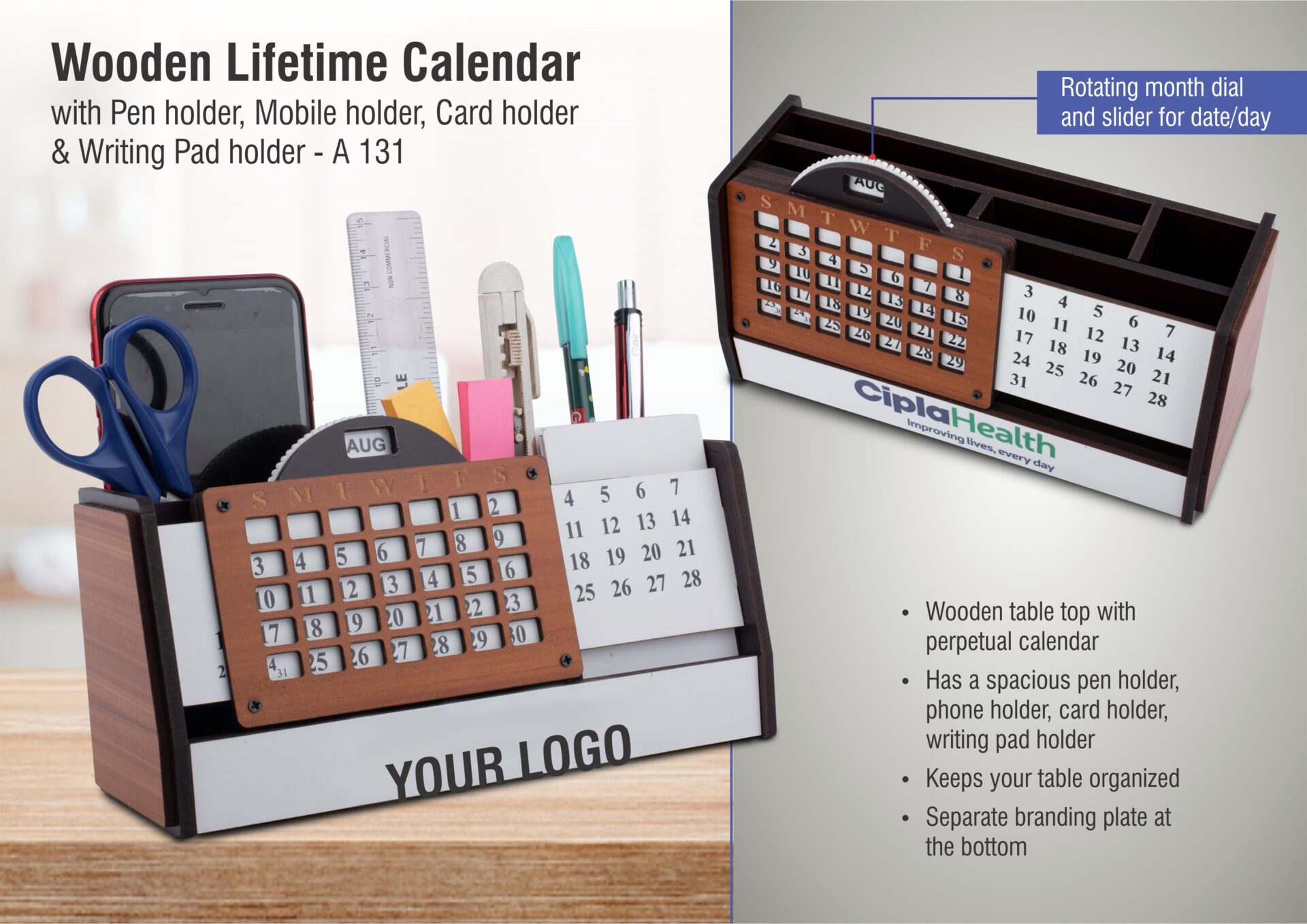 – Wooden table top with perpetual calendar