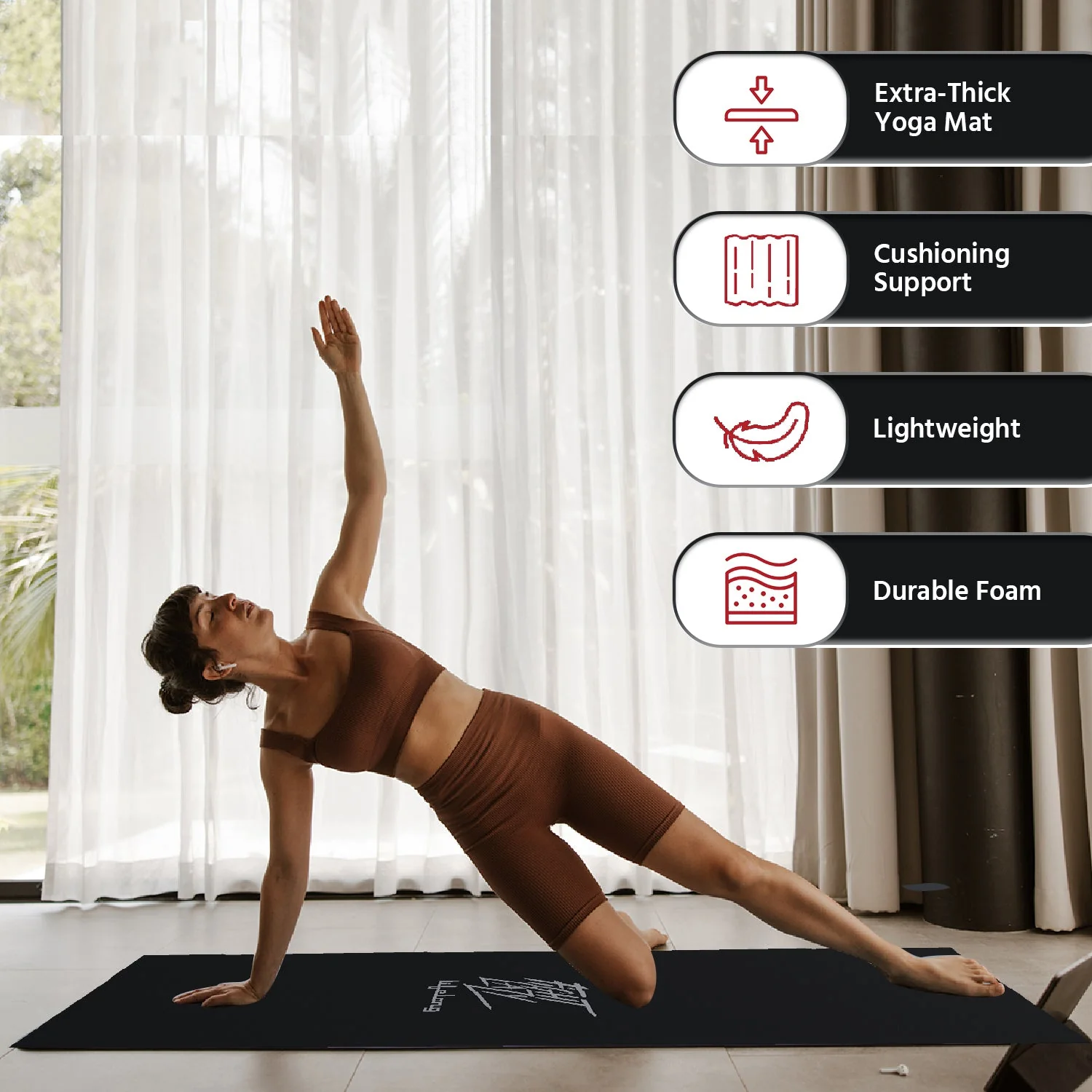 The Lifelong Yoga Mat for men and women is made from 6mm thick EVA material, providing excellent support and comfort. Its anti-slip design ensures stability during gym workouts, yoga sessions, and home exercises.